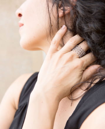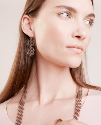 Forte de sa connaissance sensible des matériaux, de leur fabrication, de leurs comportements,  elle s’engage dans la création de bijoux en cotte de mailles en 2008, avec les premiers Basiques.