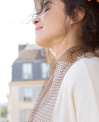 Pascale Lion, créatrice de bijoux à Paris. Spécialisée dans le travail des cottes de mailles et des mailles métalliques appliqué au design, cette entreprise artisanale propose de nombreux modèles de colliers, sautoirs, bracelets, bagues, boucles d’oreille, manchettes en cotte de mailles, en acier inoxydable, bronze ou titane. Egalement des accessoires : écharpes, ceintures, débardeurs ; et des objets comme des lampes et des vases en cotte de mailles. Un design original et raffiné pour des bijoux contemporains originaux.