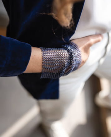 Nous travaillons à la main des cottes de mailles issues d’une belle industrie française, produites avec des matériaux de haute qualité, pérennes et recyclables. Les finitions sont réalisées avec le plus grand soin dans notre atelier à Paris, ou auprès d’artisans de proximité.